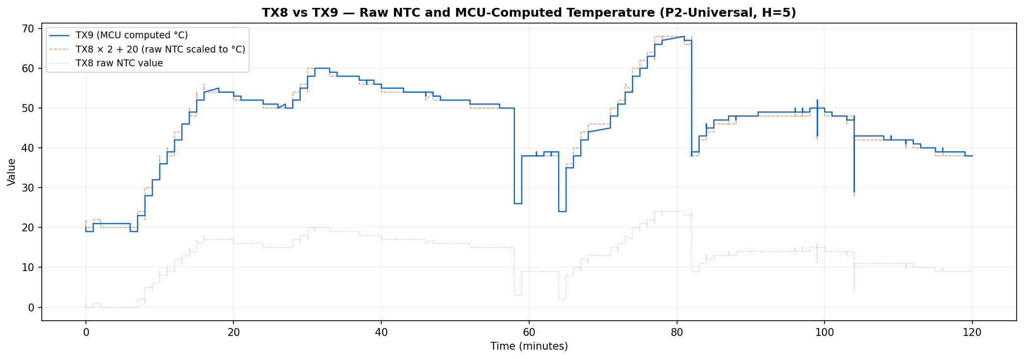 The regeneration counter. The manual says the softener regenerates every n cycles depending on the hardness setting. TX4=66 is confirmed as the regeneration valve state, and TX29 appears related to regeneration scheduling (it toggles between 0 and 2 at cycle completion of regeneration cycles). However, the actual cycle counter that determines when regeneration occurs is MCU-internal — it never appears in the TX stream. Not every eligible program triggers regeneration, so the MCU must be tracking usage internally.